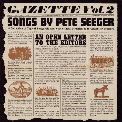 Gazette, Vol. 2 is and English album released in 1961. There are a total of 13 songs in Gazette, Vol. 2. The songs were composed by Pete Seeger, a talented musician. Listen to all of Gazette, Vol. 2 online on JioSaavn.