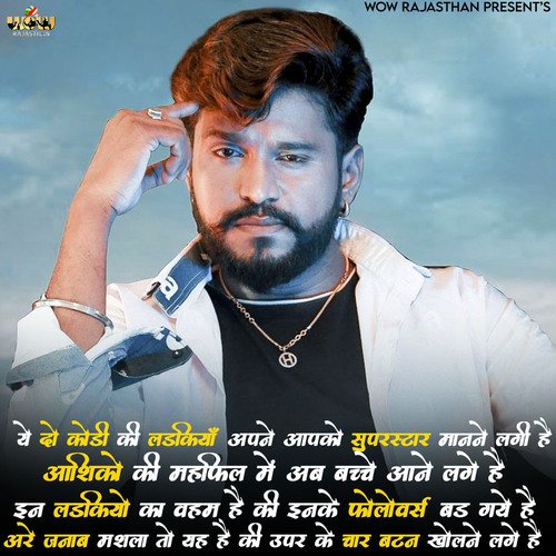 Ye Do Kodi Ladkiya Apne Aapko Superstar Manne Lagi Hai Aashiko Ki Mahefil Mein Ab Bachhe Aane Lage Hai in Ladkiyo Ka Vahm Hai Inke Followers Bad Gaye Hai Are Janab Mashla to Yah Hai Ki Upar Ke Char Button Kholne Lage Hai is a Rajasthani album released in 2021. There is one song in Ye Do Kodi Ladkiya Apne Aapko Superstar Manne Lagi Hai Aashiko Ki Mahefil Mein Ab Bachhe Aane Lage Hai in Ladkiyo Ka Vahm Hai Inke Followers Bad Gaye Hai Are Janab Mashla to Yah Hai Ki Upar Ke Char Button Kholne Lage Hai. The song was composed by Goutam Govinda, a talented musician. Listen to all of Ye Do Kodi Ladkiya Apne Aapko Superstar Manne Lagi Hai Aashiko Ki Mahefil Mein Ab Bachhe Aane Lage Hai in Ladkiyo Ka Vahm Hai Inke Followers Bad Gaye Hai Are Janab Mashla to Yah Hai Ki Upar Ke Char Button Kholne Lage Hai online on JioSaavn.