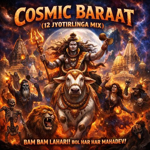 Listen to Cosmic Baraat (12 Jyotirlinga Mix) online. Cosmic Baraat (12 Jyotirlinga Mix) is a Hindi language song and is sung by Mr.Kilvish. Cosmic Baraat (12 Jyotirlinga Mix), from the album Cosmic Baraat (12 Jyotirlinga Mix), was released in the year 2026. The duration of the song is 4:00. Download Hindi songs online from JioSaavn.