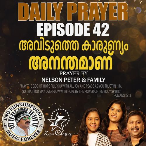 Listen to Daily Prayer Episode 42 (Aviduthe Karunyam Ananthaman) online. Daily Prayer Episode 42 (Aviduthe Karunyam Ananthaman) is a Malayalam language song and is sung by Nelson Peter and Family and Jino Kunnumpurath. Daily Prayer Episode 42 (Aviduthe Karunyam Ananthaman), from the album Daily Prayer Episode 42, was released in the year 2025. The duration of the song is 4:21. Download Malayalam songs online from JioSaavn.