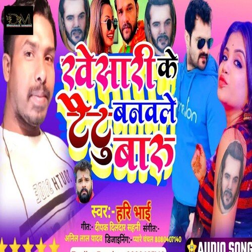 Listen to Khesari Le Tatoo Banwale Baru online. Khesari Le Tatoo Banwale Baru is a Bhojpuri language song and is sung by Hari Bhai. Khesari Le Tatoo Banwale Baru, from the album Khesari Le Tatoo Banwale Baru, was released in the year 2023. The duration of the song is 3:54. Download Bhojpuri songs online from JioSaavn.