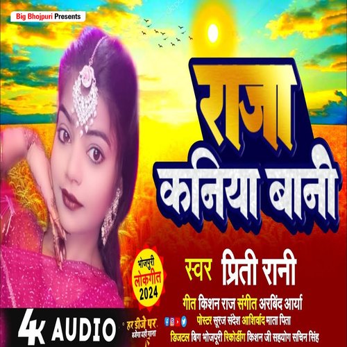 Listen to Raja Kaniya Bani (Bhojpuri) online. Raja Kaniya Bani (Bhojpuri) is a Bhojpuri language song and is sung by Priti Rani. Raja Kaniya Bani (Bhojpuri), from the album Raja Kaniya Bani, was released in the year 2024. The duration of the song is 4:26. Download Bhojpuri songs online from JioSaavn.