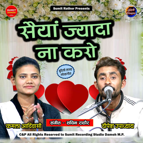 Listen to Saiyan Jada Na Karo online. Saiyan Jada Na Karo is a Hindi language song and is sung by Dipesh Upadhyay and Kamla Adivasi. Saiyan Jada Na Karo, from the album Saiyan Jada Na Karo, was released in the year 2021. The duration of the song is 9:03. Download Hindi songs online from JioSaavn.