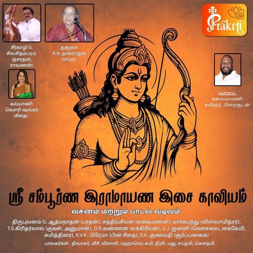 Listen to Sri Sampoorna Ramayana Isai Kaaviyam, Pt. 2 online. Sri Sampoorna Ramayana Isai Kaaviyam, Pt. 2 is a Tamil language song and is sung by Dr. Sirkali G. Siva Chidambaram, Kalyani Gowri Shankar, Thirupuvanam G.Aathmanathan, B.N.Nagarajan, Sathya Seelan, Margabandhu, T.S.Giridharlal, O.R.Kannan, S.J.Jananiy, K.V.K Prema and S.K.Gunavathi. Sri Sampoorna Ramayana Isai Kaaviyam, Pt. 2, from the album Sri Sampoorna Ramayana Isai Kaaviyam, was released in the year 2026. The duration of the song is 1:04:45. Download Tamil songs online from JioSaavn.
